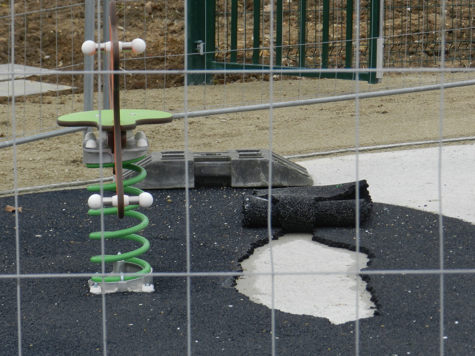 – Ou peut-être qu’il a prévu de foirer la réfection de la piste d’athlétisme, un peu comme ce que la municipalité est en train de faire avec le square du capitaine Jean D’HERS, dans lequel le revêtement des jeux pour enfants est déjà en train de partir en morceaux ? À priori, un problème de support qui ne retient pas la matière, laquelle a été posé par temps trop froid…