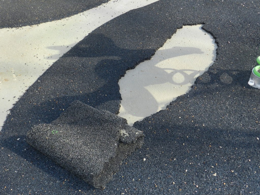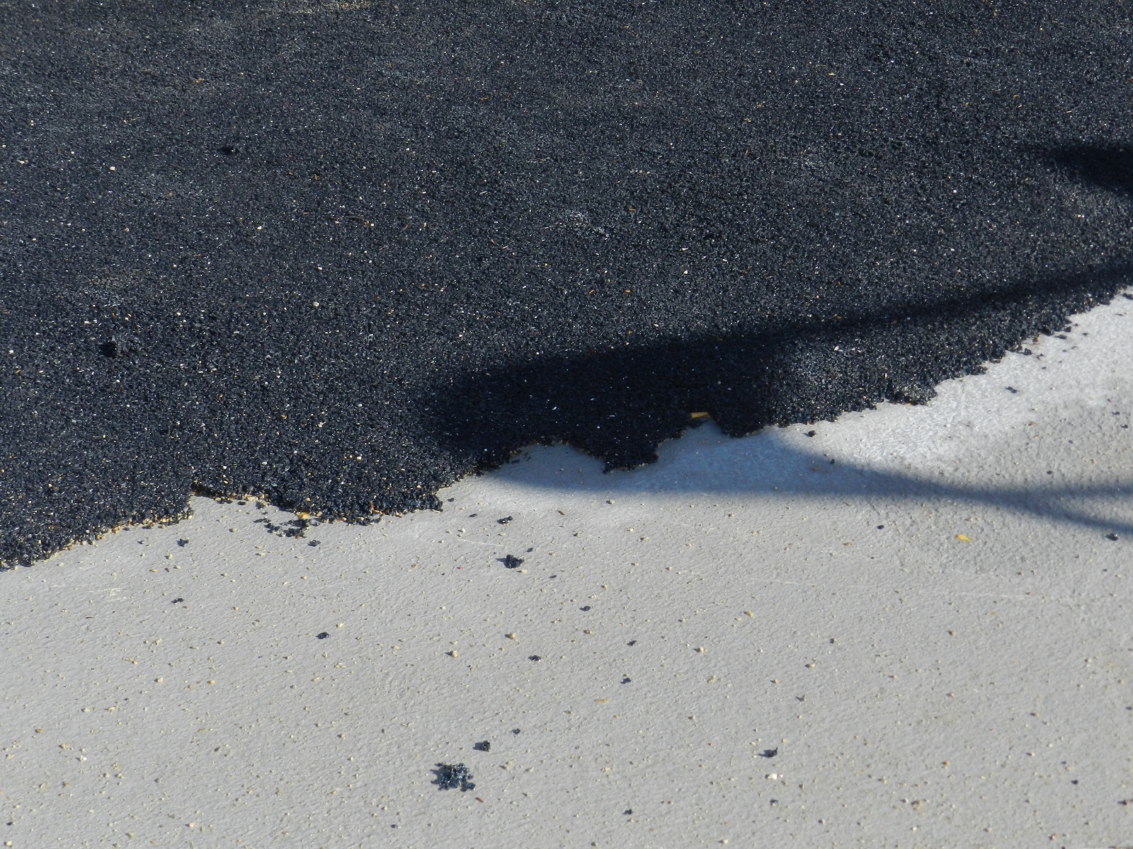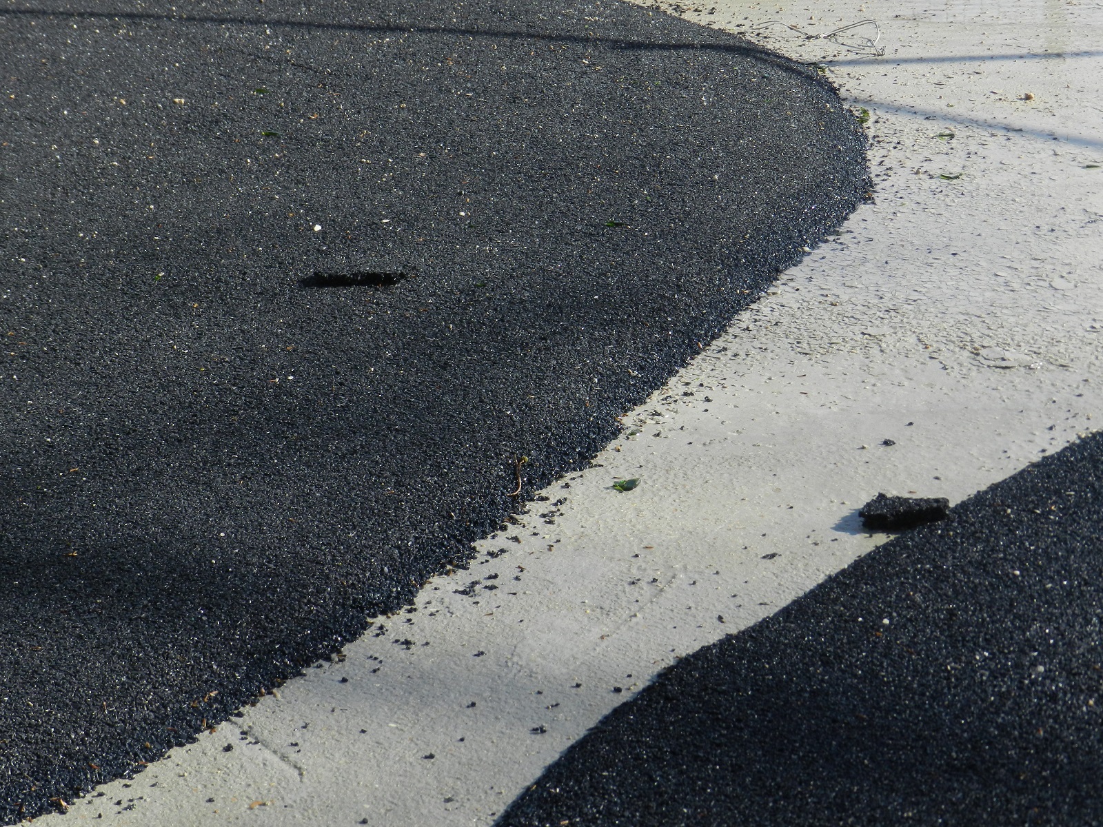 En cinquième et dernier lieu, on relèvera que ce revêtement ne s’effrite pas que par ses extrémités, mais que des bouts, plus ou moins gros, s’arrachent bel et bien par endroits.