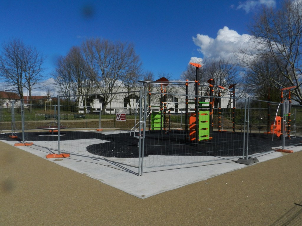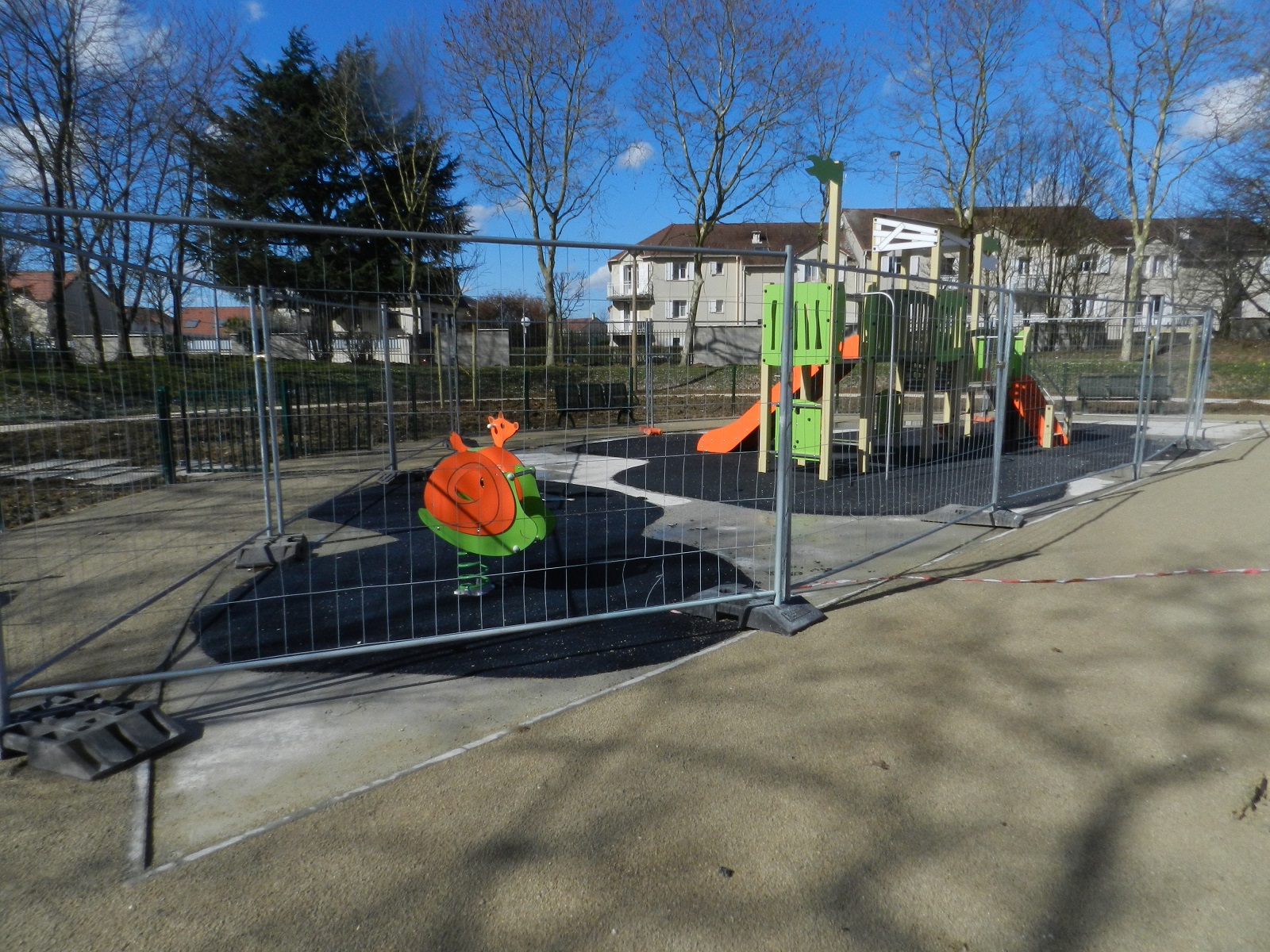 En troisième lieu, on s’interrogera sur la raison de l’absence d’étalement d’une couche continue au niveau des aires de jeux… À croire qu’ils n’avaient pas assez de matière… Mais peut-être qu’une autre couche d’une autre matière est attendue ?