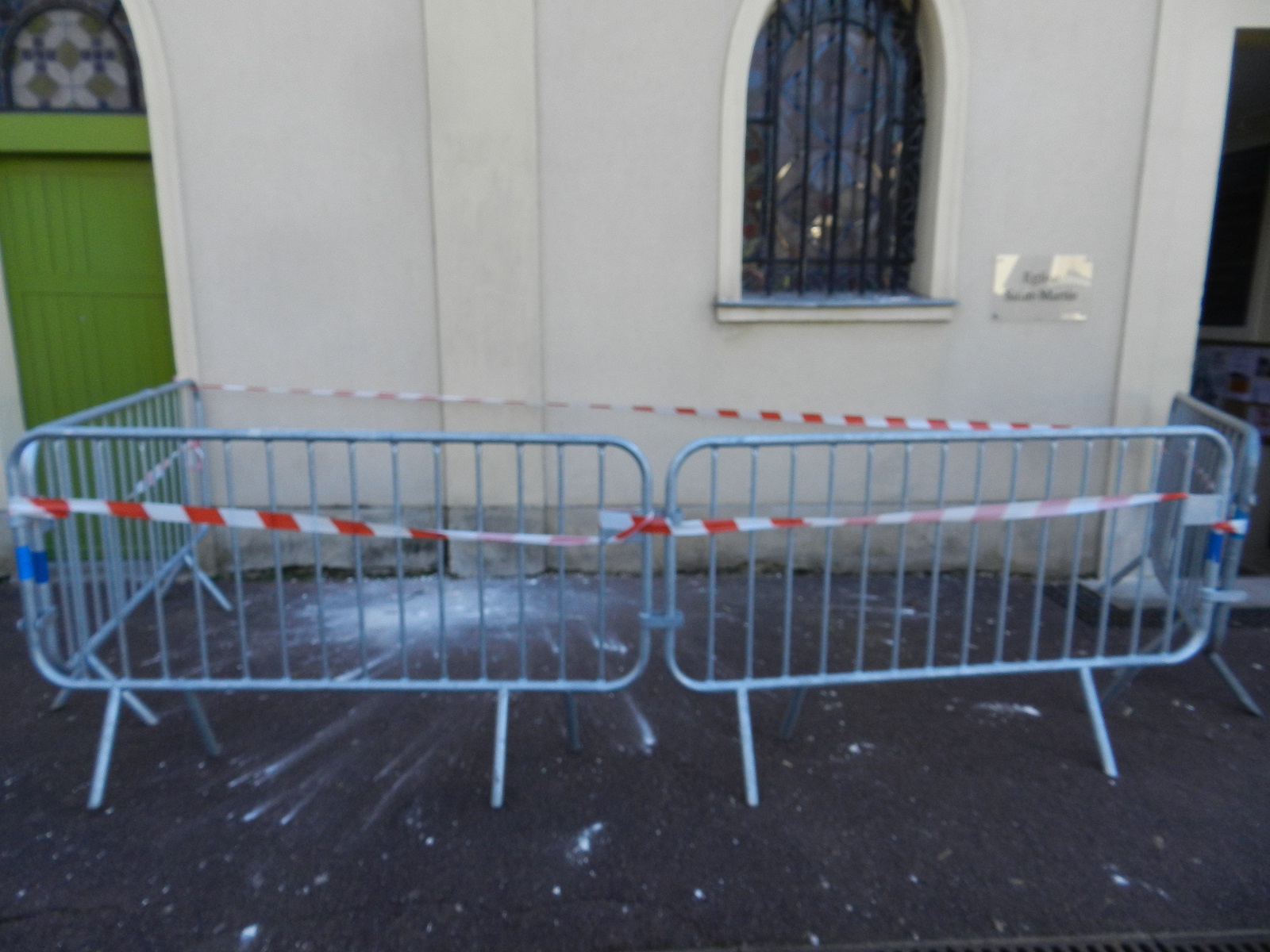 En juin 2018 sont prévus des travaux pour le toit de l’église ; laquelle devrait fermer environ un mois. Sauf que ce n’est pas ce qu’on peut appeler le toit qui semble partir en miettes… Il faudrait aussi s’interroger plus largement sur l’état de l’ensemble du bâtiment, ce qui est soi disant fait, même si j’ai la faiblesse de penser qu’il y aurait eu un filet posé, qui aurait empêché cette jolie décoration de barrières et de ruban rouge et blanc.