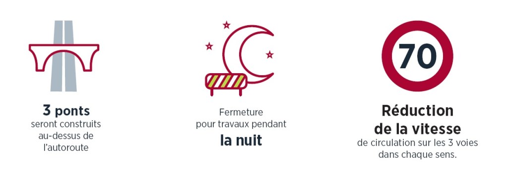 Ces fermetures n’auront lieu qu’en semaine ; du lundi au jeudi ; en soirée, sinon dans la nuit, entre 21 h 30 et 5 heures. Des déviations seront mises en place et indiquées.