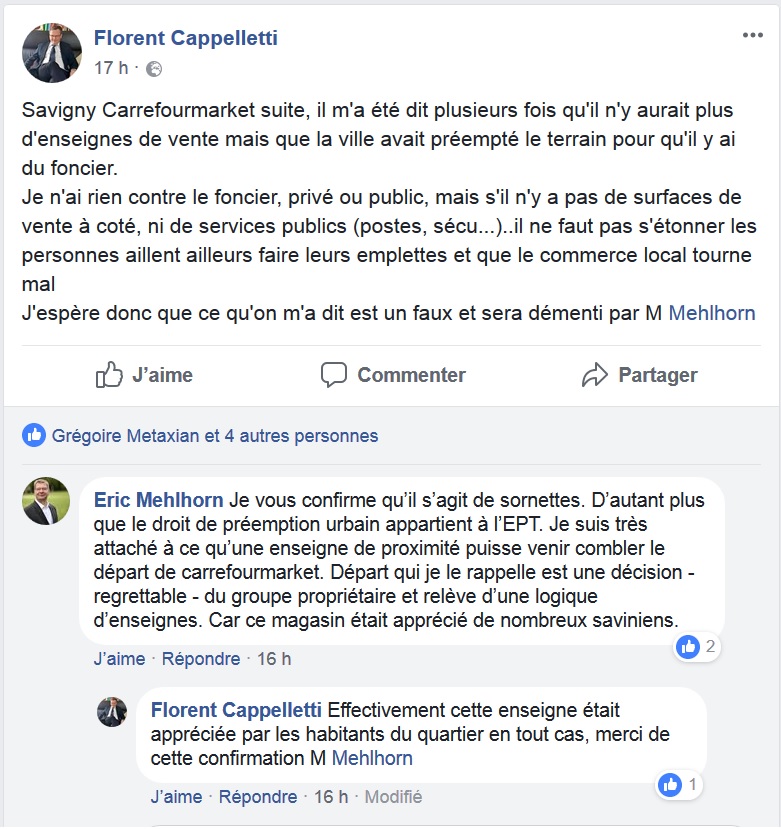 Voilà qui tombe quand même très bien pour le maire de Savigny ! Le magasin vidé, et non repris, la municipalité pourrait alors réaliser sa 5e OAP, c’est à dire le détruire et le remplacer par du logement social ! Avec néanmoins le projet de réaliser un autre espace commercial devant ces immeubles, ce qui permet donc au maire de continuer d’affirmer qu’il est mobilisé pour du commerce en cet endroit, tout en laissant Carrefour contact effectivement fermer en juillet.