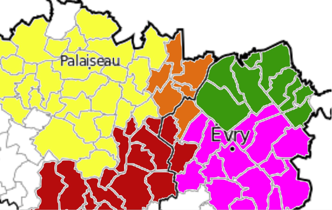 (4) La CAVYVS était l’hypothèse originelle du schéma régional de coopération intercommunal. Elle n’est pas assez peuplée, et abrite Draveil, ville dans laquelle travaille le maire de Juvisy. Elle souffre de n’avoir qu’un pont sur le territoire pour joindre les deux parties de l’agglomération ; et de la concurrence de François DUROVRAY qui en a fait son fief, et ne permettra pas à RÉDA d’y régner. Donc l’hypothèse la plus logique aux yeux de l’État, même sans cohérence territoriale.