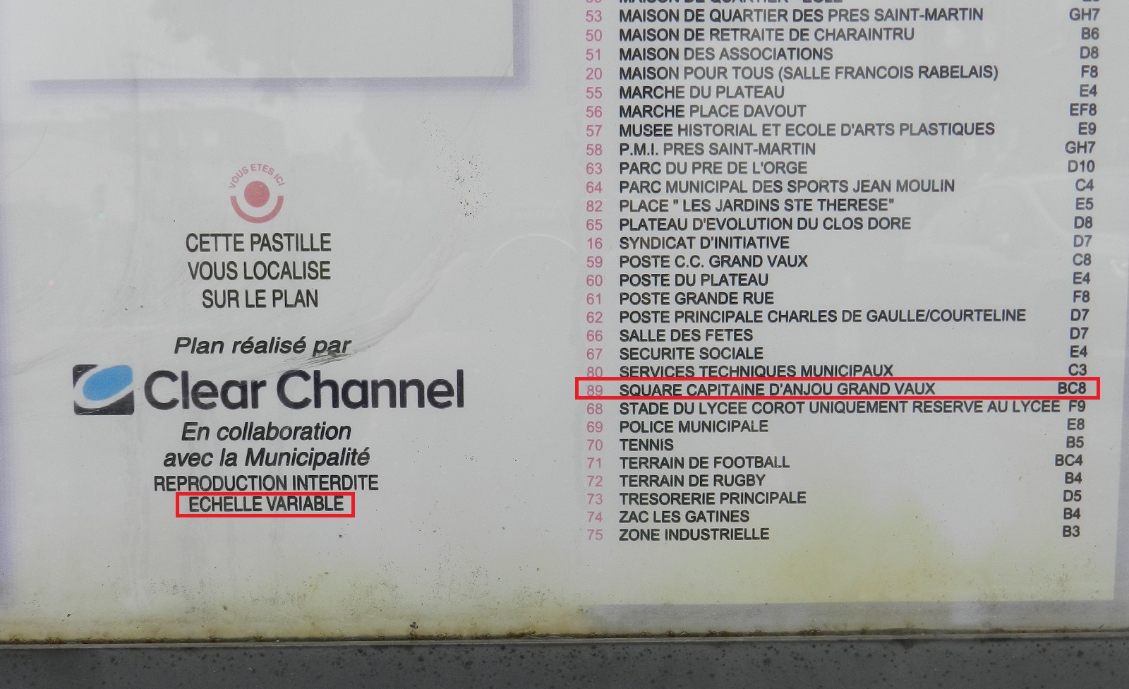Par ailleurs, on retrouvait bien le nom de ce square (mal orthographié) sur un plan de la Ville :