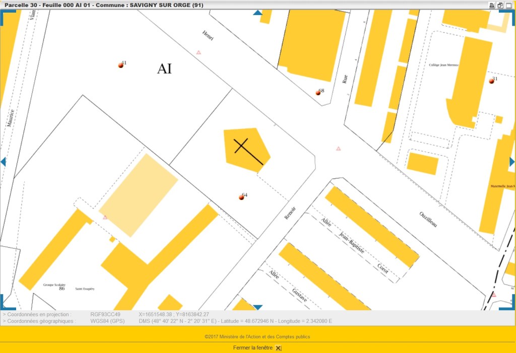 (je précise que je mesure par parallélisme avec la limite de la parcelle de l’immeuble de l’allée Corot)