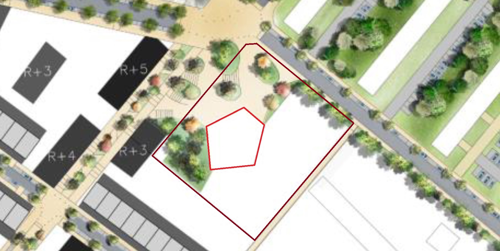 Et quand je regarde le plan du projet, arrêté au terme de la pseudo-concertation, donc normalement définitif, même si je suis le seul à penser qu’il va être retoqué par l’ANRU en tant qu’il ne respecte pas les normes de catégories de construction fixées à l’article 55 de la loi SRU, et que je calque les limites de la parcelle sur le projet, j’ai un petit problème…