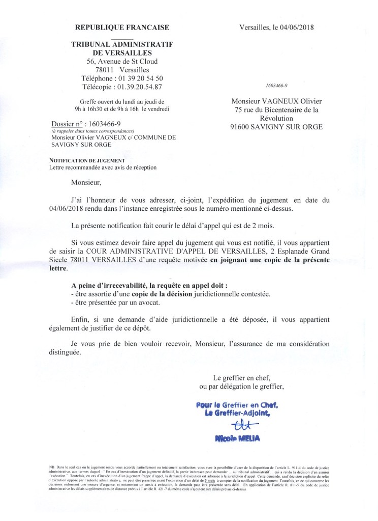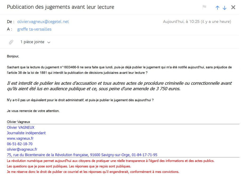 Une réponse à « La belle bourde du Tribunal administratif de Versailles qui m’envoie le jugement avant sa lecture »