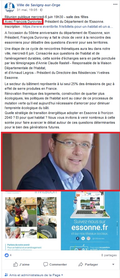 Ce mercredi 06 juin 2018, le Conseil départemental organisait une réunion publique à Savigny, consacrée à la question de la stratégie de transition énergétique pour l’Essonne à l’horizon 2040 par l’habitat et l’aménagement durable. Seul petit problème, ni la transition énergétique, ni l’habitat, ni l’aménagement ni même le logement ne sont des compétences départementales obligatoires. Bref, juste l’occasion de se dire écolo !