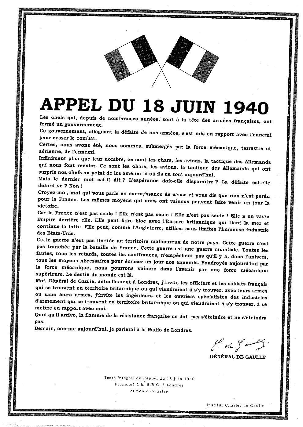 L’appel du 18 juin, c’est cela :