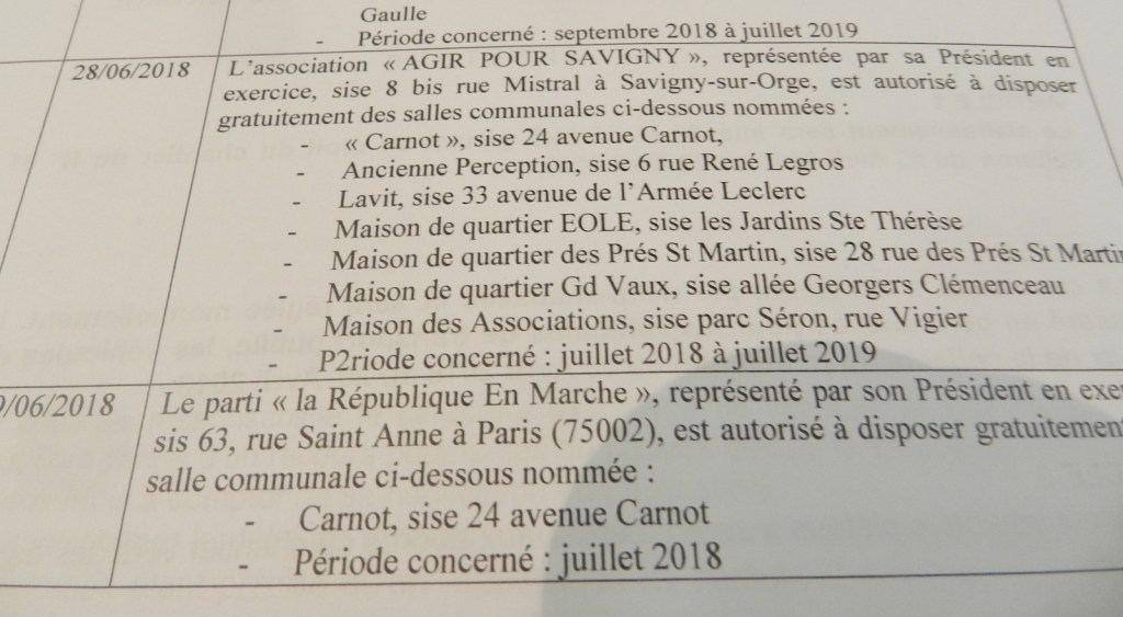 2. Puisque MEHLHORN est si soucieux que les associations bénéficiant de prêts de salles respectent la Loi (ce dont je ne doute pas que l’ASLS fait), j’annonce ici le dépôt d’un recours contre l’arrêté octroyant le prêt de salles municipales à l’association Agir pour Savigny, soutien notoire du maire, laquelle ne respecte ni ses statuts, ni les règles et les formalités de déclarations et de publications, et fait actuellement l’objet d’une demande de dissolution judiciaire. J’ai jusqu’au 28 août !