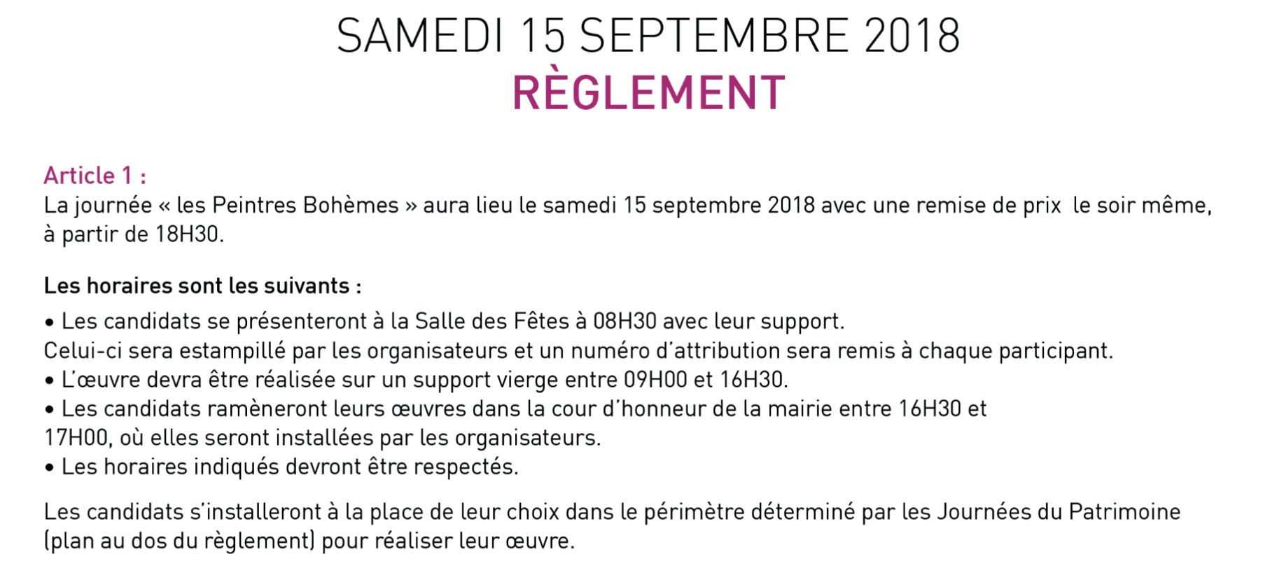 Cela devait être l’évènement phare de ces journées du patrimoine 2018, intégralement « pensées par Monsieur le maire », dixit Joëlle EUGÈNE, maire-adjointe à la Culture. Mais déjà le matin, je n’avais croisé personne en train de peindre. Alors quand à l’heure de l’exposition dans la Cour d’honneur de la mairie, devant précéder la remise des prix, je n’ai vu personne, j’ai bien compris que l’évènement avait été annulé, faute de participants.