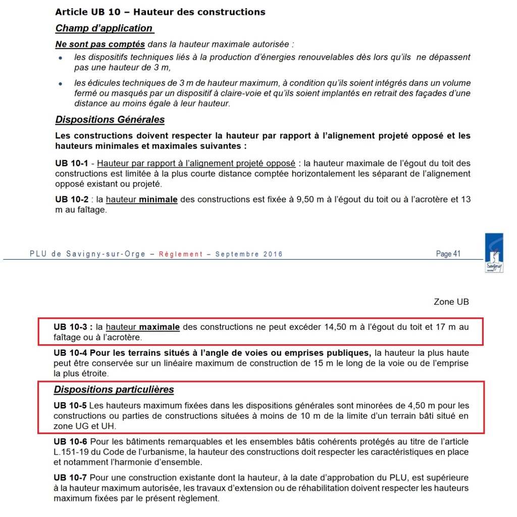 Or, le très mauvais PLU de M. MEHLHORN dit quand même que pour assurer une transition, les hauteurs maximales en UB sont minorées lorsqu’elles sont à moins de 10 mètres d’un UG construit.