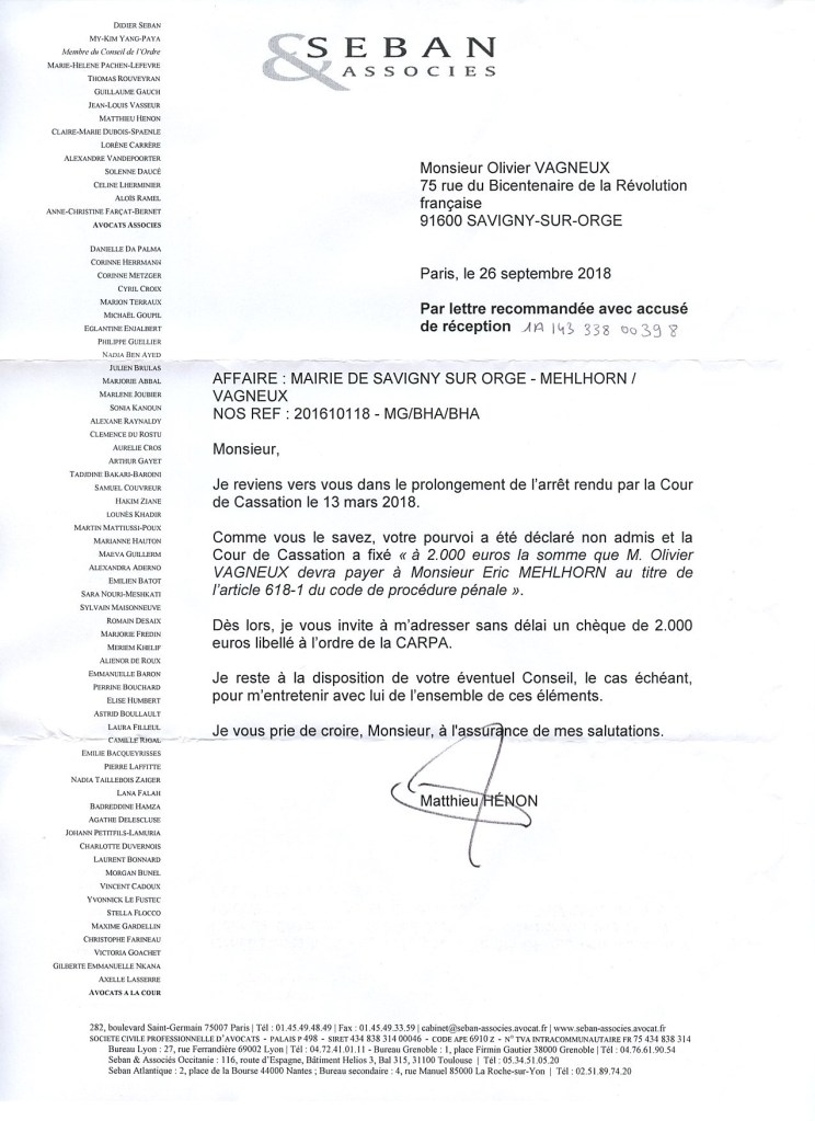 3 réponses à « Cassation perdue : l’avocat d’Éric MEHLHORN me réclame 2000 euros au nom d’un arrêt dont j’ignore tout »