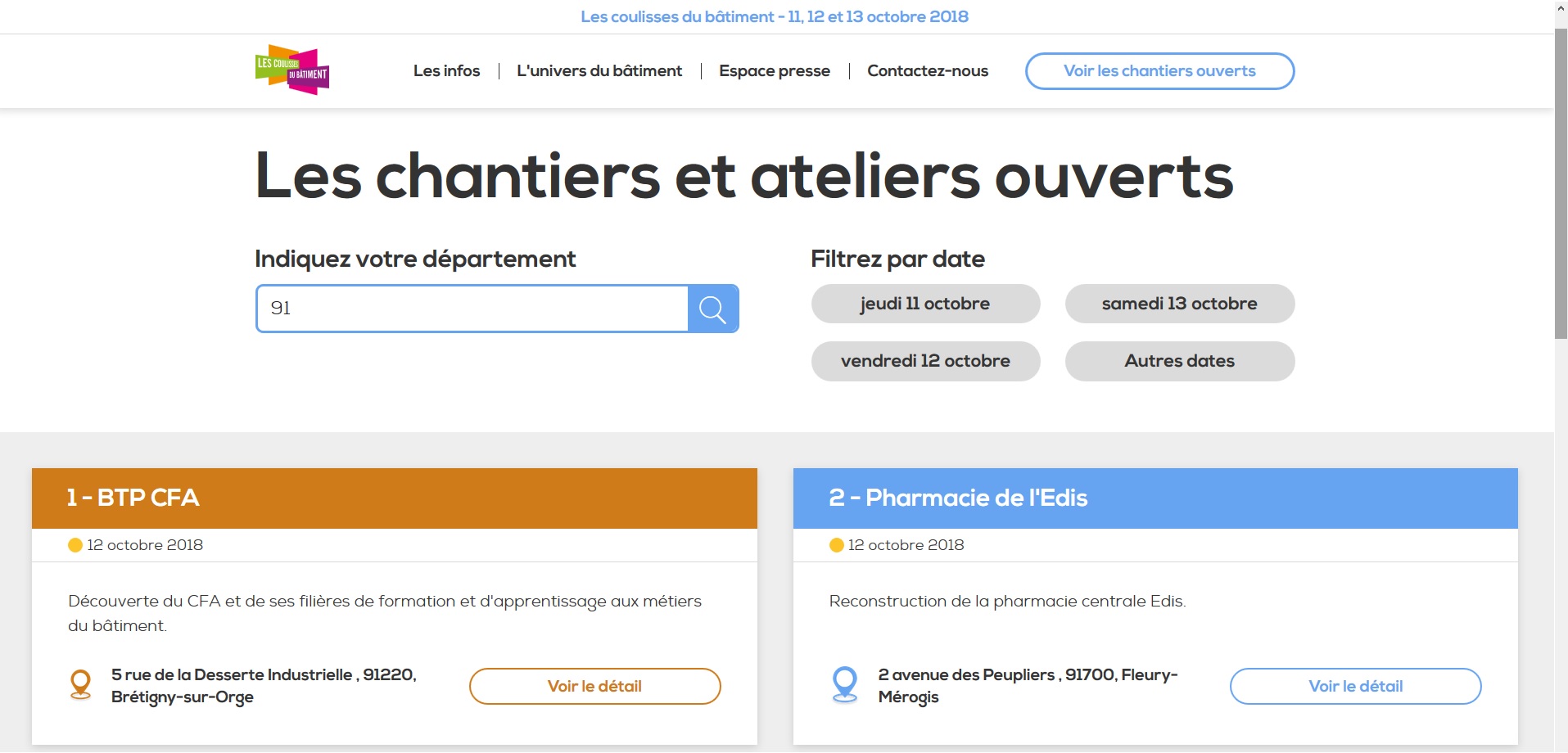 Les coulisses du bâtiment, auxquelles MEHLHORN a participé, proposait en effet seulement deux visites de chantiers en Essonne : la reconstruction d’une pharmacie à Fleury-Mérogis, et la découverte du CFA (Centre de formation des apprentis de Brétigny) et de ses filières de formation.