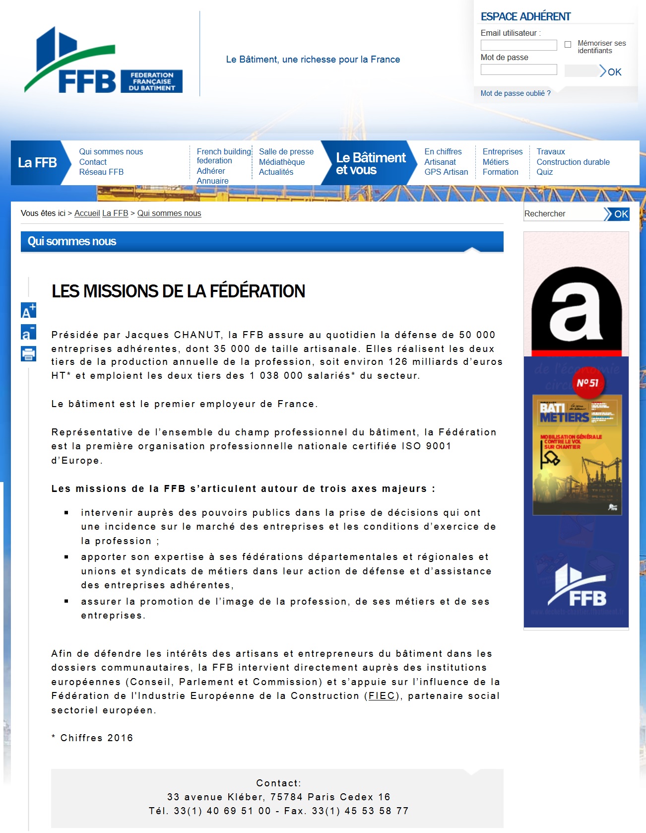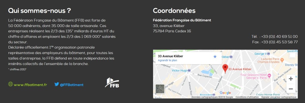 Commençons par un petit tour sur le site de la fédération française du bâtiment (FFB).