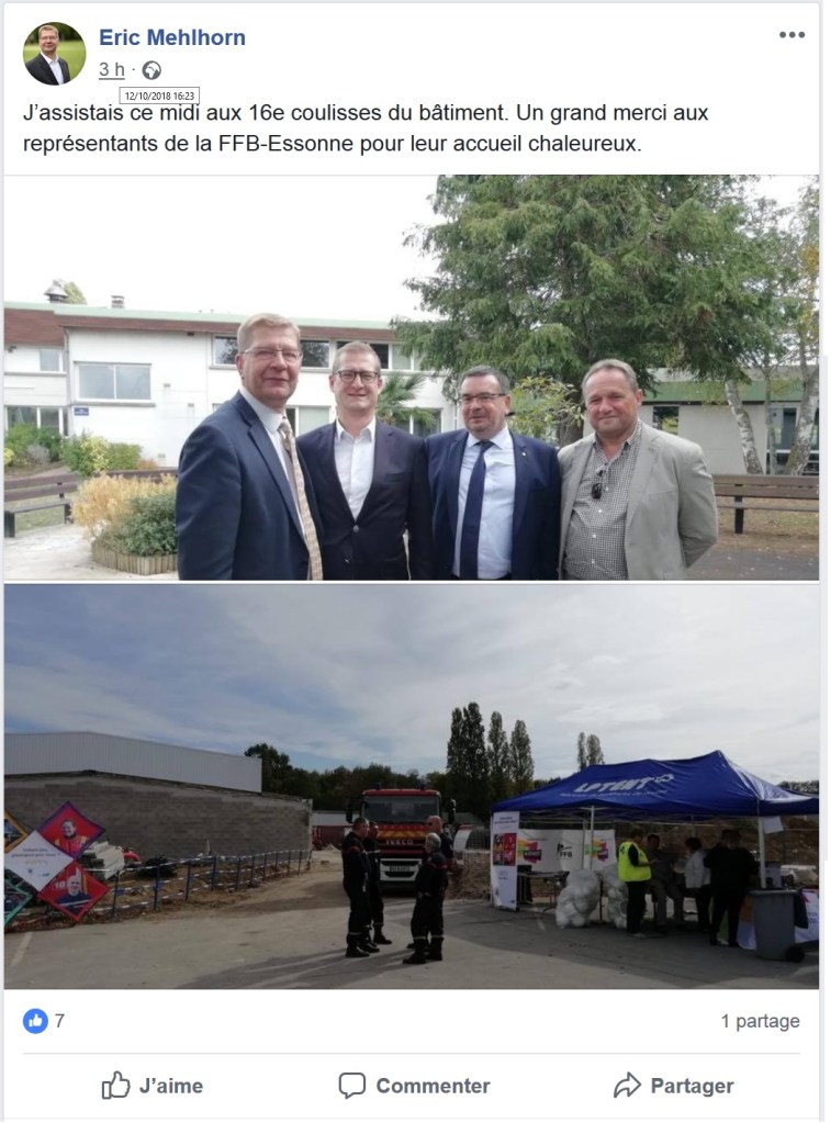 Car même en faisant le lien avec les différents mandats de MEHLHORN, soit comme maire de Savigny-sur-Orge, donc bétonneur ayant autorisé la construction de plus de 1200 logements collectifs en moins de trois ans, soit comme vice-président du Conseil départemental en charge du patrimoine, donc en lien avec le secteur du bâtiment, ce qu’a fait MEHLHORN ce vendredi 12 octobre 2018 ne rejoint pas son champ de compétences.