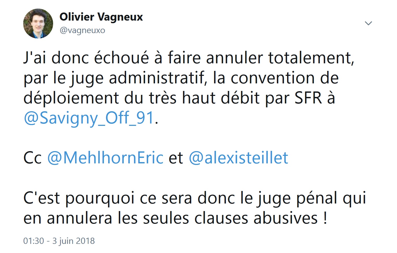 Je pensais ne plus avoir d’autres solution que le pénal (plainte n°Parquet Évry n°18/067/187) pour faire annuler les contrats de fibre optique, défavorable aux Saviniens.