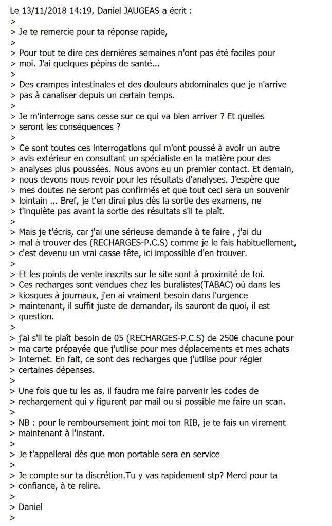 5 réponses à « Droit de suite : Quelqu’un pour « dépanner » le faux Daniel JAUGEAS de 5 fois 250 euros ? »