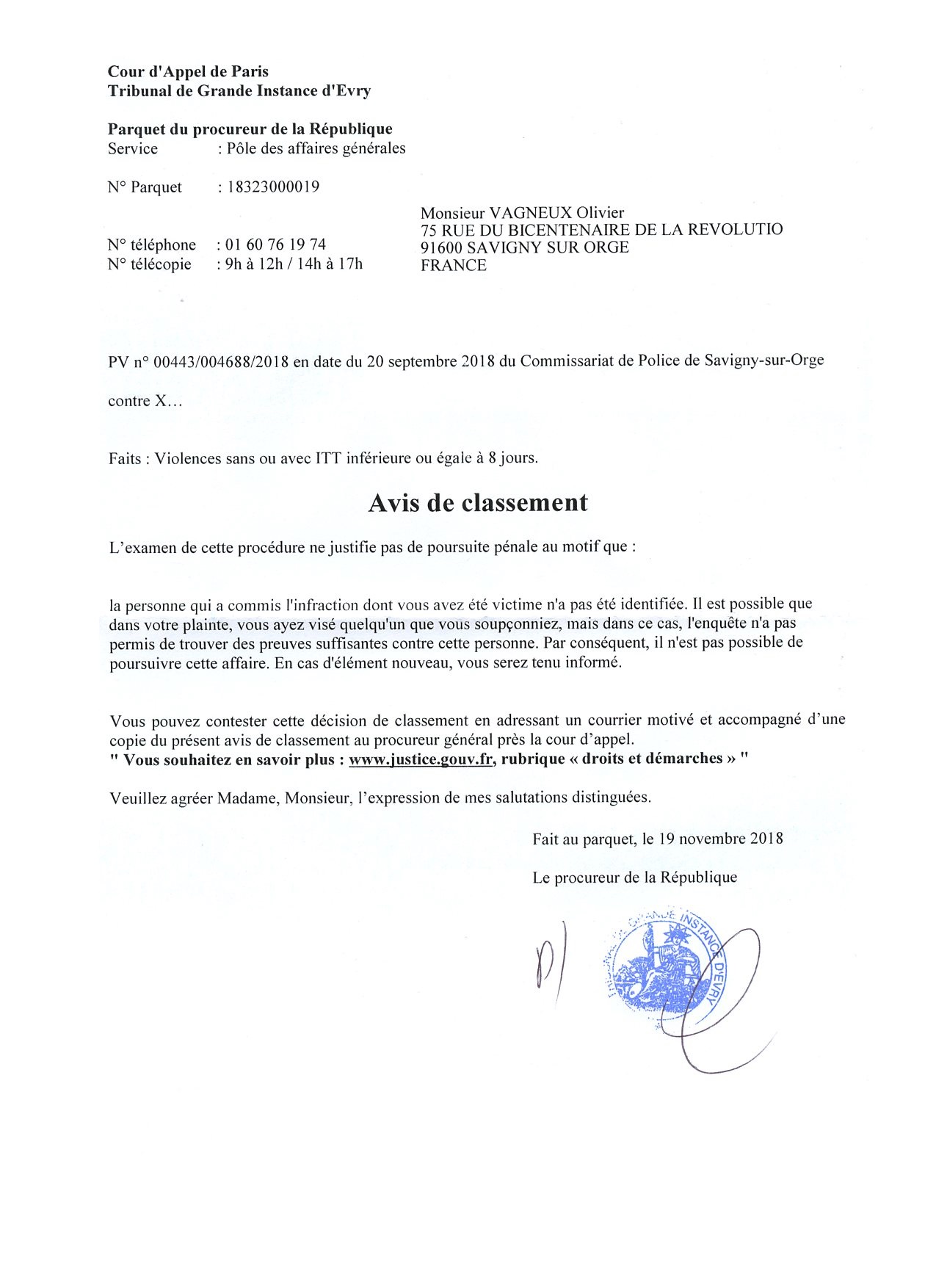 Je ne comprends pas non plus comment ma plainte peut avoir un numéro en 18/323, ce qui signifierait que je l’ai déposé le 323e jour de l’année, soit le 19 novembre, jour du classement de la plainte.