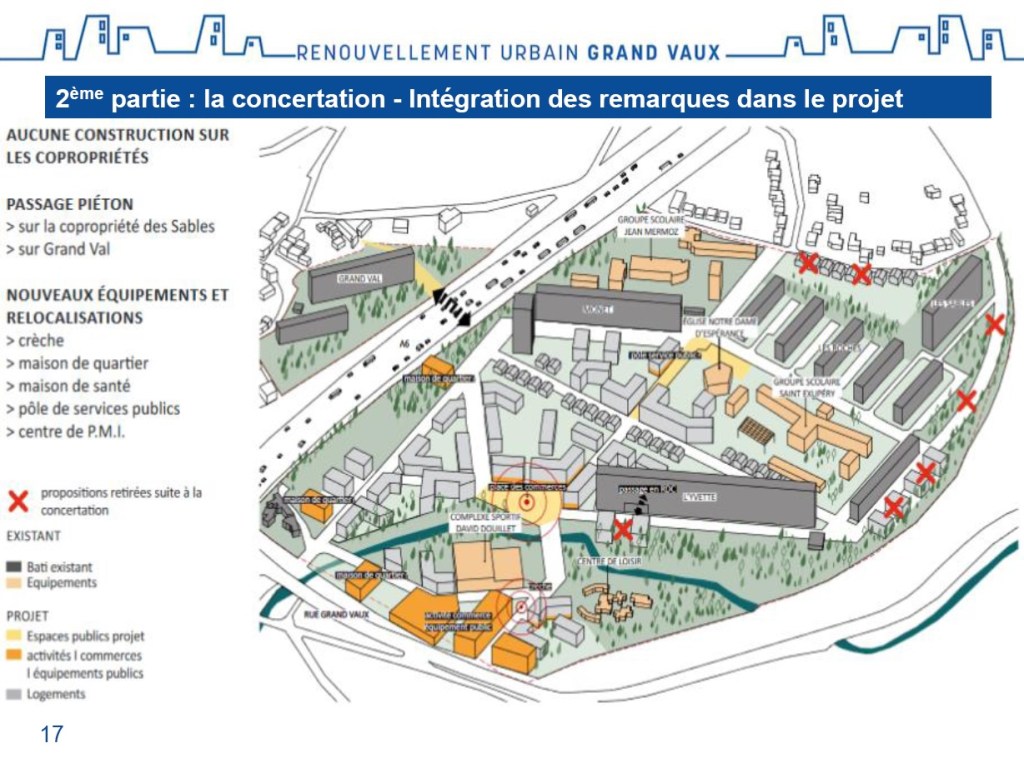Le plus moche étant sûrement la division que l’on créé dans Grand-Vaux, en instrumentant les copropriétaires, qui tant qu’ils ne sont pas concernés vont systématiquement se ranger du côté de la Commune. Cette situation n’est pas sans donner à penser qu’il pourrait exister des arrangements entre eux et la Ville, ce qui pourrait expliquer que tout le négatif prévu de leur côté a été abandonné entre temps… Regardez juste où sont situés les croix rouges…