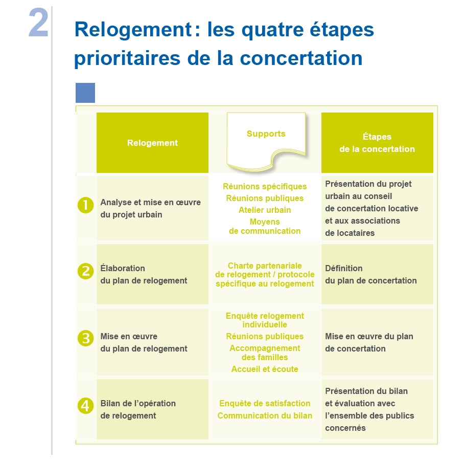 L’élaboration d’un « protocole de relogement », aussi appelé « charte du relogement », est une obligation règlementaire contenue dans le Nouveau programme national de renouvellement urbain (NPNRU).