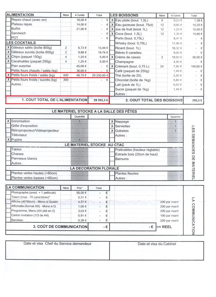 Alors est-ce que Christine CHARRIER, chargée du protocole, ne s’est pas dit un seul instant qu’il y avait un problème à commander 600 kilos de petits fours froids et salés pour seulement 150 personnes ?