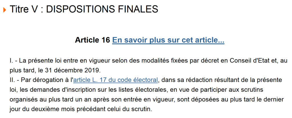 Une lecture un peu rapide de l’article L.17 modifié du code électoral nous donnerait à penser que nous avons jusqu’au vendredi 12 avril 2019 pour nous inscrire sur les listes électorales en vue de participer au scrutin des élections européennes.