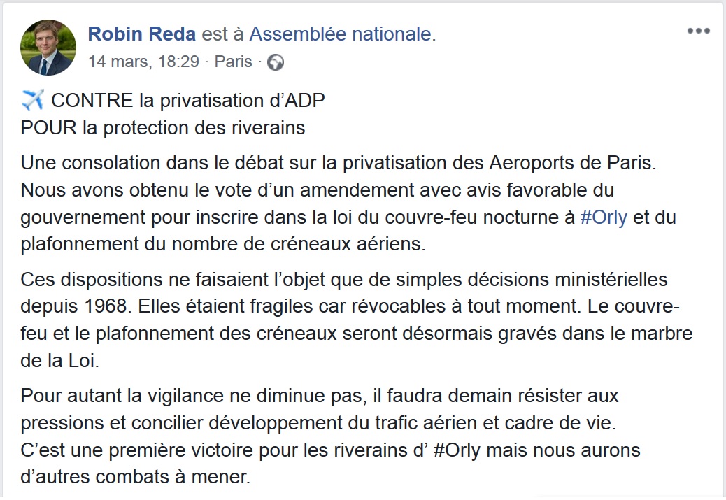 Le député Robin RÉDA, opposé à la privatisation d’ADP mais pas au point de voter contre la loi !