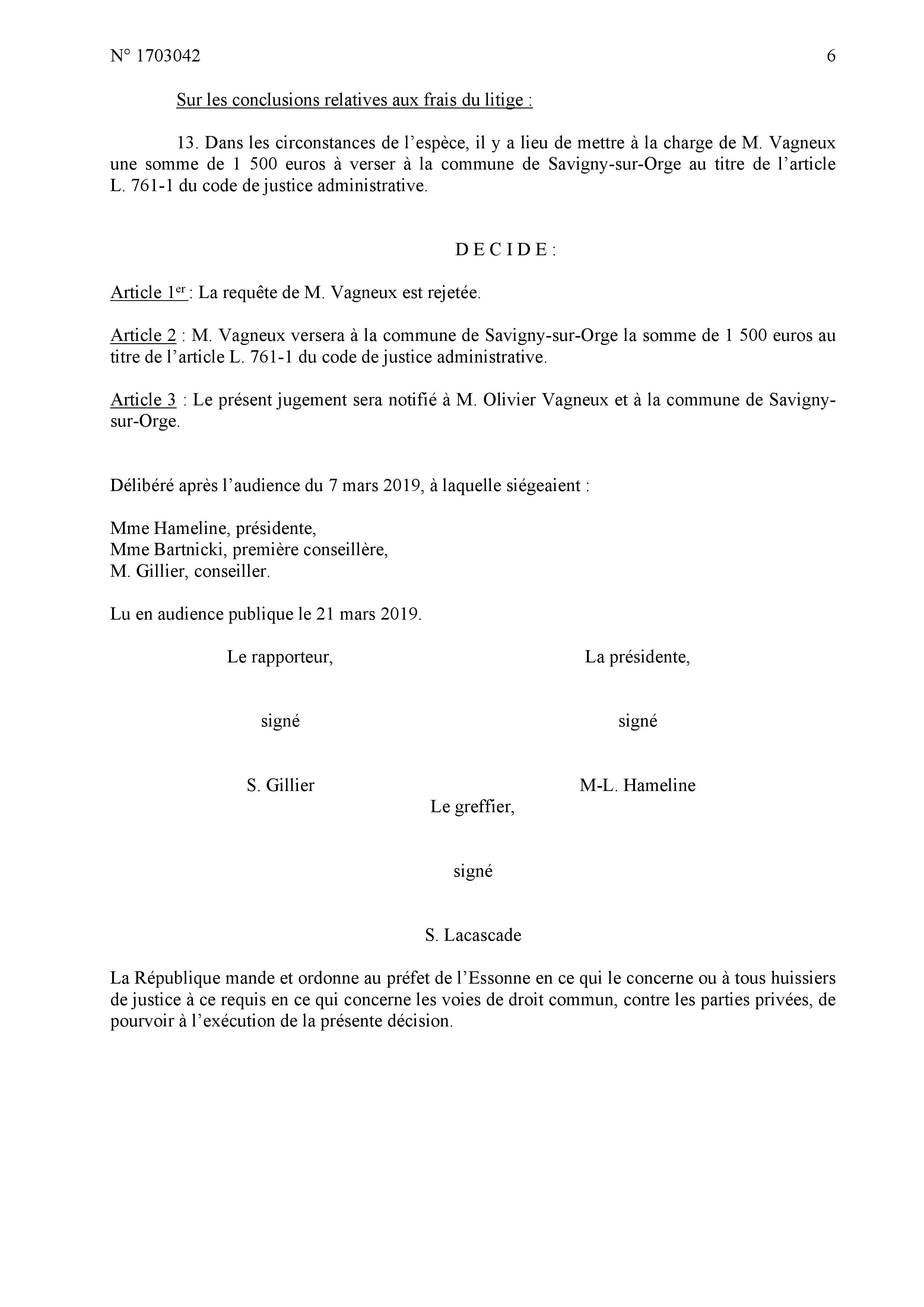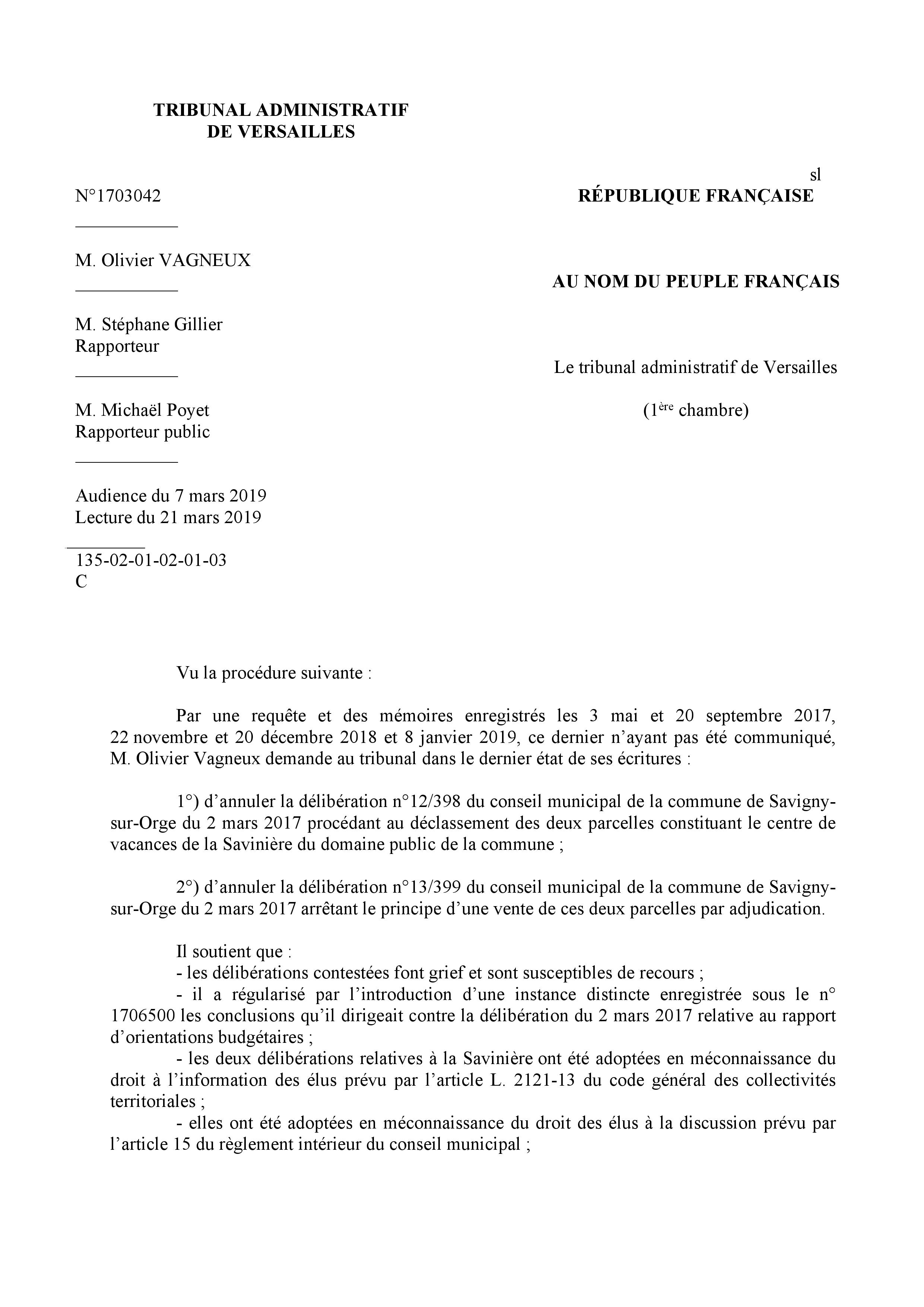 Encore une affaire de perdue, et je suis cette fois condamné à verser 1500 euros de frais de justice à la Commune de Savigny-sur-Orge.