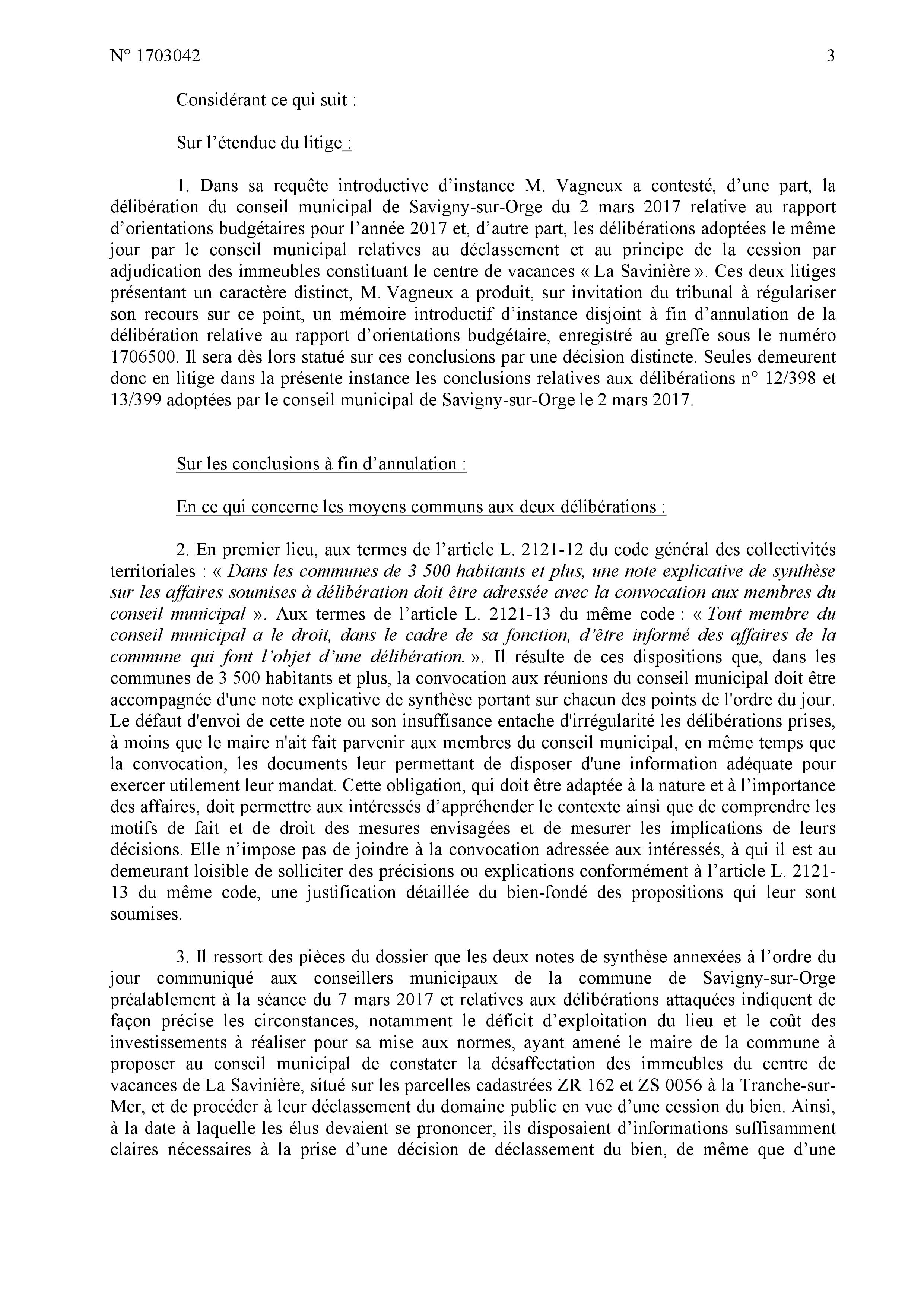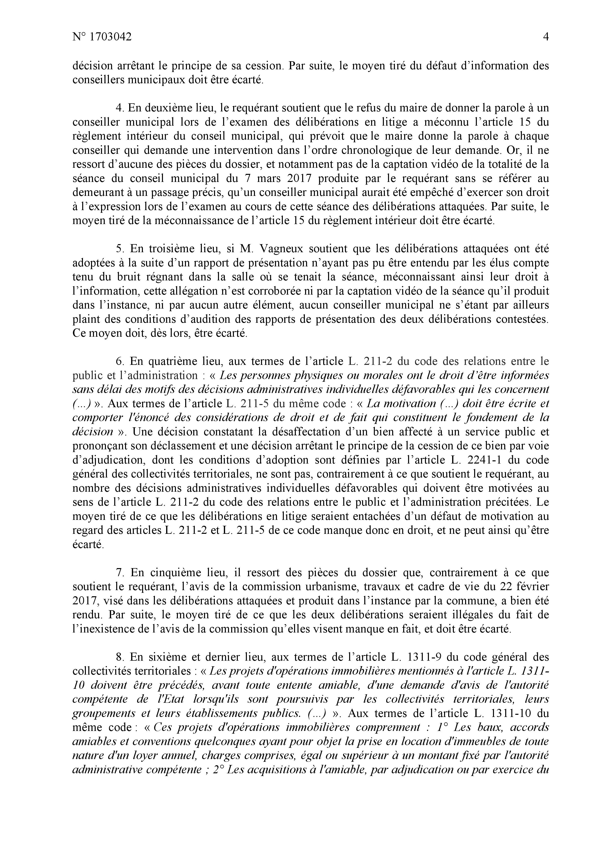 – Il estime que toutes les informations nécessaires à voter la délibération attaquée étaient contenues dans la note de synthèse, malgré les demandes de Jean-Marc DEFRÉMONT et de Jacques SÉNICOURT, dont il fait grief qu’elles ne se soient pas matérialisés par des écrits avant ou après le conseil.