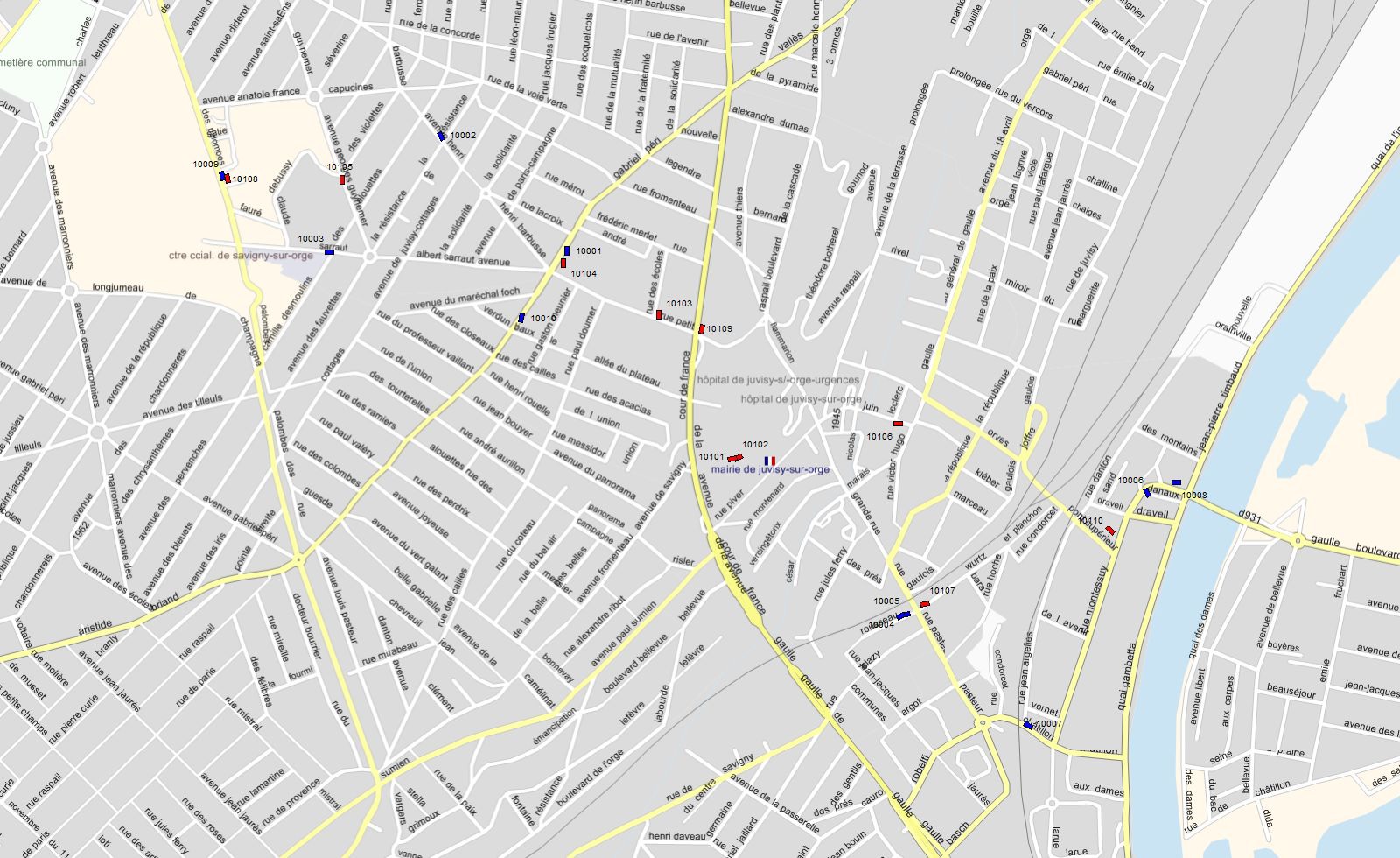 Des opposants au maire de Juvisy (Essonne) me demandent la liste des panneaux d’affichage libre dans leur commune. L’ayant obtenue avec difficultés pour ma campagne législative, je n’ai aucune raison de la garder jalousement pour moi, donc la voici pour tous ! Elle n’est pas très lisible, et je la referai à l’occasion. À jour au 19 mai 2017.