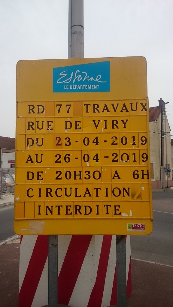Donc la RD 77 (avenue de Viry) va être fermée de ce mardi 23 avril 2019 au vendredi 26 avril 2019 de 20 h 30 à 06 h 00.