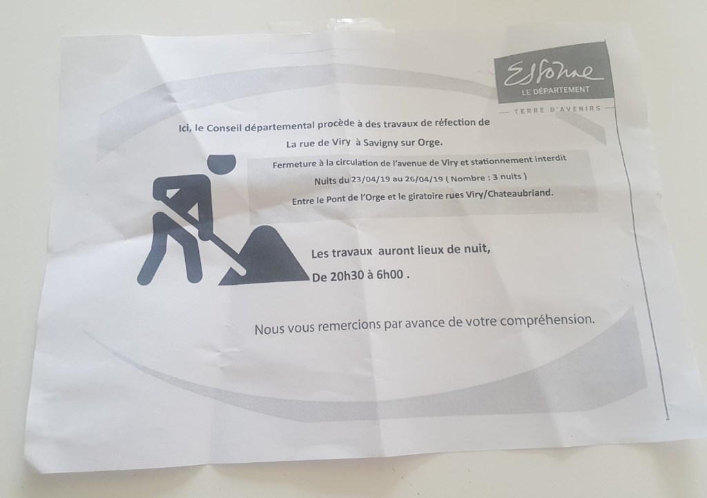 Savigny-sur-Orge : trop peu d’informations sur les travaux de la RD25 et RD77 d’avril et mai 2019 !