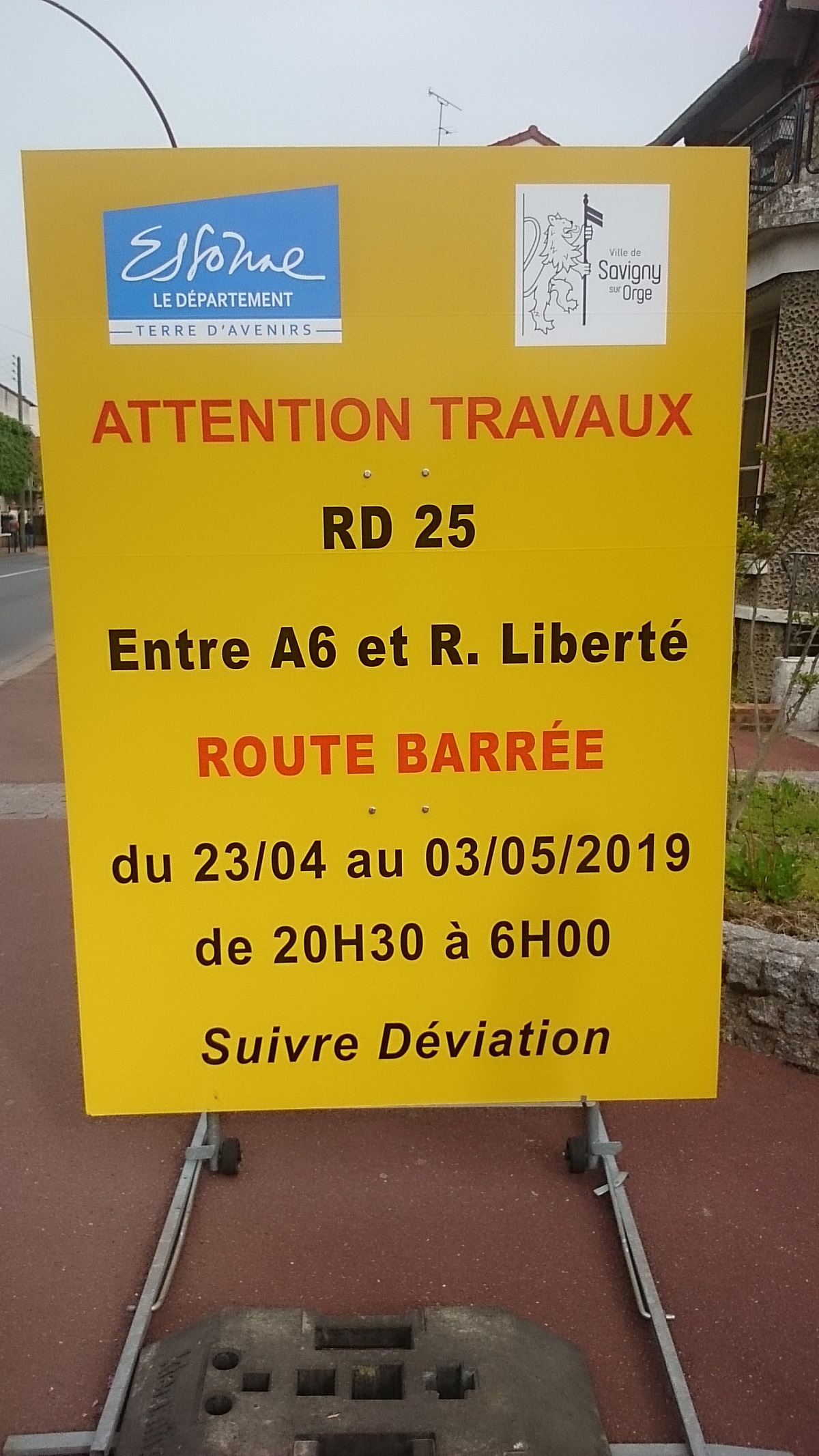 Savigny-sur-Orge : trop peu d’informations sur les travaux de la RD25 et RD77 d’avril et mai 2019 !