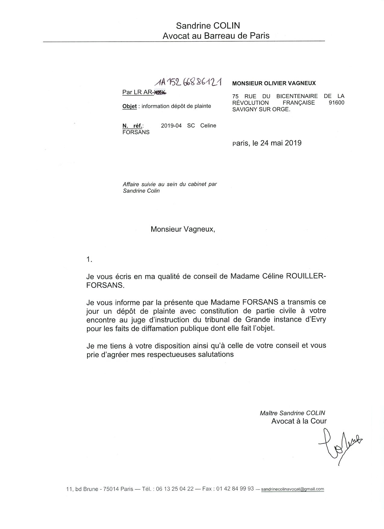 Ainsi donc, Céline ROUILLER-FORSANS, directrice du CCAS de Savigny-sur-Orge, a déposé plainte à mon encontre, avec constitution de partie civile !