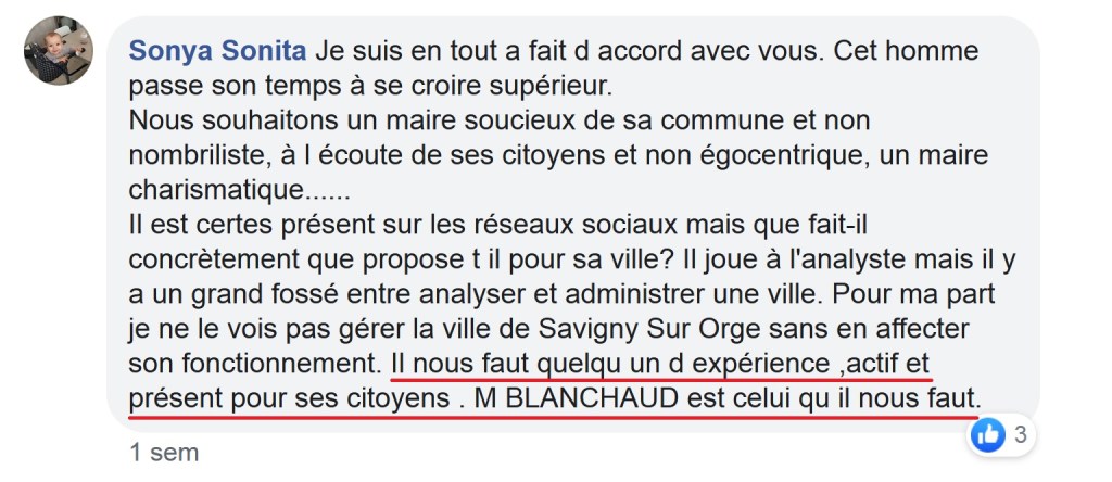 Et donc mes petites mouches me rapportent le culte de la personnalité qui s’exprime dans les commentaires autour de la candidature de Bernard BLANCHAUD !