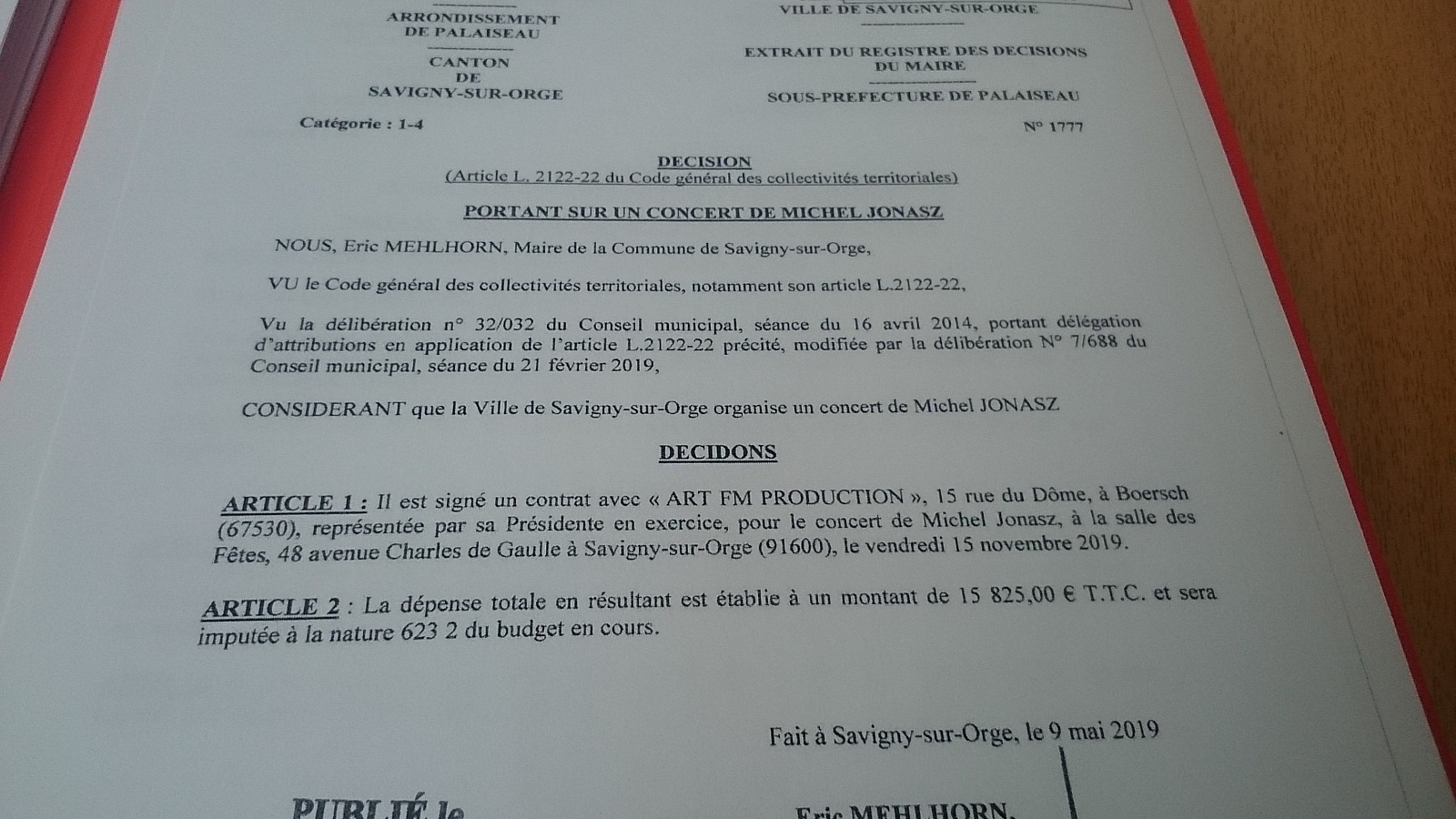 15 novembre 2019 – Michel JONASZ : 15 825 €