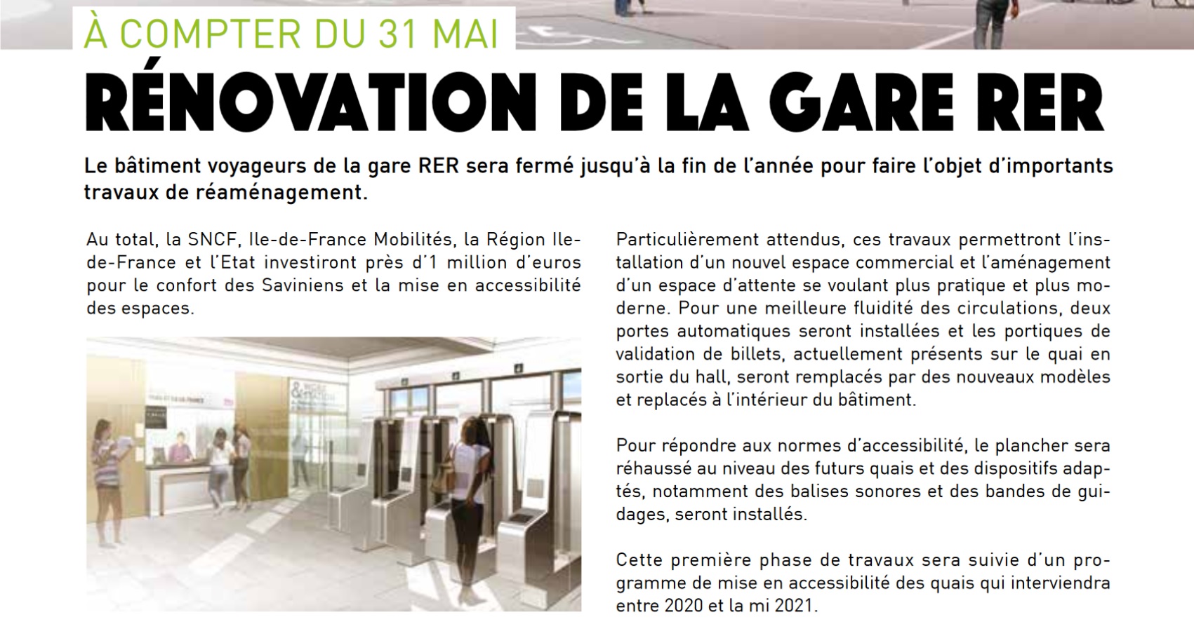 Je commencerai par évacuer mes trois reproches : le passage sous la gare n’est pas amélioré pour les personnes en fauteuils, les personnes âgées, les poussettes et les sacs de course, aucun nouvel accès au quai n’est créé, ni aucun nouvel accès au parking sous la gare.