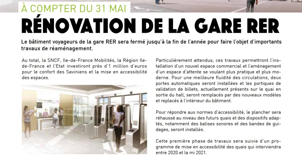 Au final, on dépense 1 million d’euros pour embellir un bâtiment, qui en avait besoin même si ce n’était pas l’urgence selon moi. Surtout quand on sait qu’il n’y aura plus que 4 RER par heure à la mise en service du T12 en 2022, si tout continue ainsi…