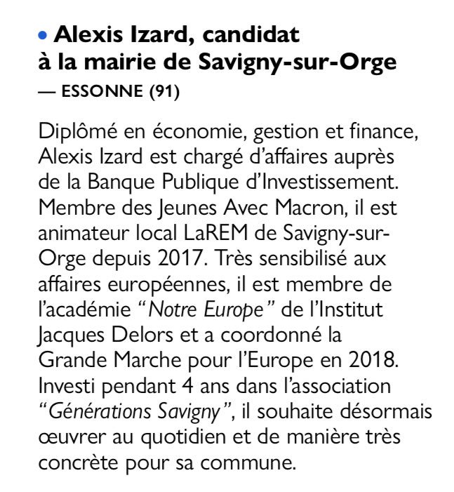 Je connais encore qu’il était suppléant de la candidate locale d’En marche aux législatives de 2017. Il est trésorier et référent Essonne des Jeunes européens, référent Europe pour En marche en Essonne et animateur du comité En marche à Savigny. Il me semblait aussi qu’il avait eu une responsabilité aux Jeunes avec Macron en Essonne.