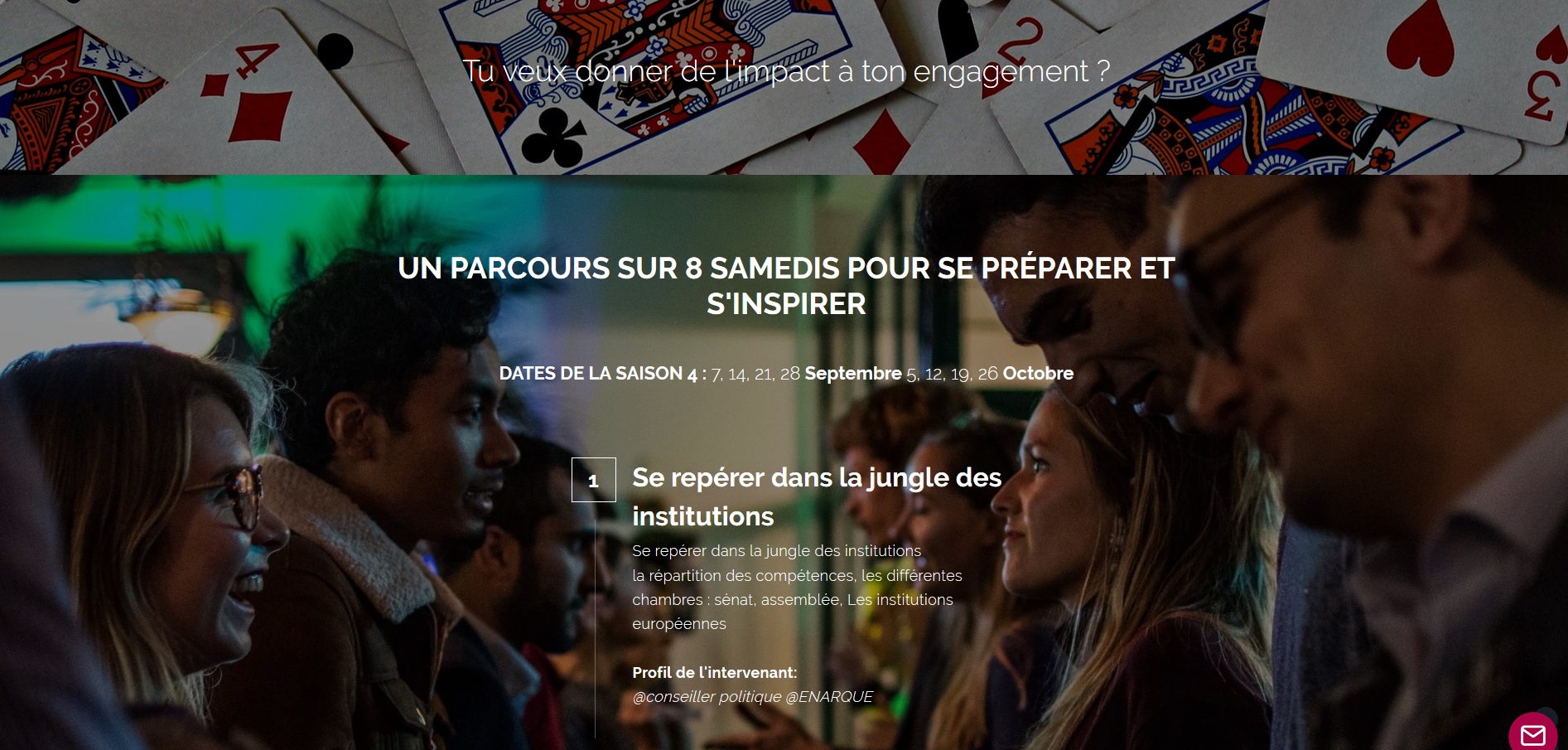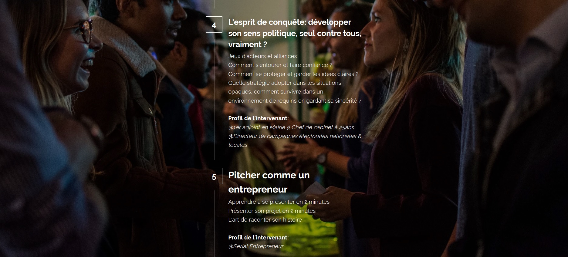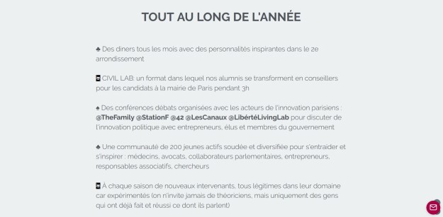 Malgré tout, je trouve étrange pour cet institut de formation, pardon cet « incubateur politique », de se vanter dès à présent de la présence d’un candidat à une formation qui n’a pas encore eu lieu, et que ledit candidat abandonnera peut-être rapidement, dès lors qu’il se rendra compte que rien ne vaut le terrain ?
