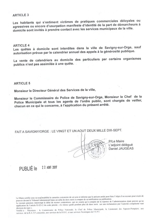 c’est qu’il y a effectivement des gens qui démarchent légalement, qui se sont présentés et signalés en mairie.