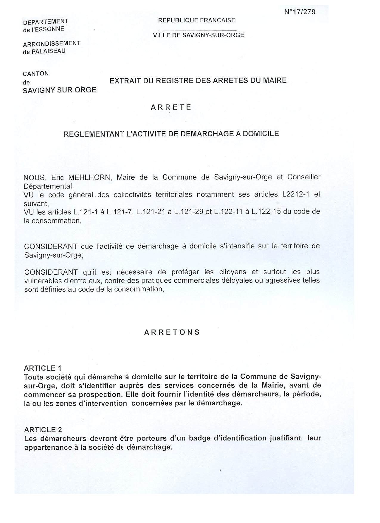 c’est qu’il y a effectivement des gens qui démarchent légalement, qui se sont présentés et signalés en mairie.
