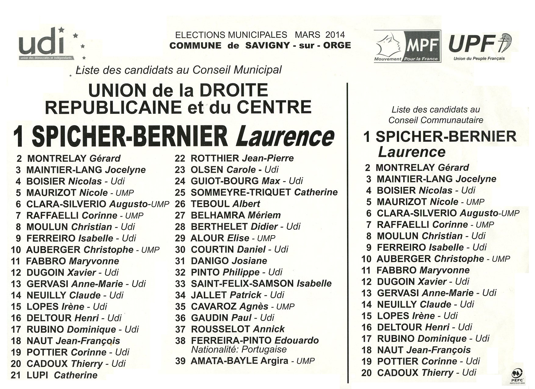 Et pourquoi pas sinon des soutiens de l’époque MARSAUDON qui crédibilisent : RAFFAELLI, FABBRO, LUPI, NEUILLY, ROTTHIER et COURTIN.