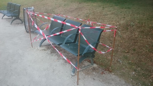 Celui-ci est resté plusieurs mois enrubanné, interdit de s’y asseoir.