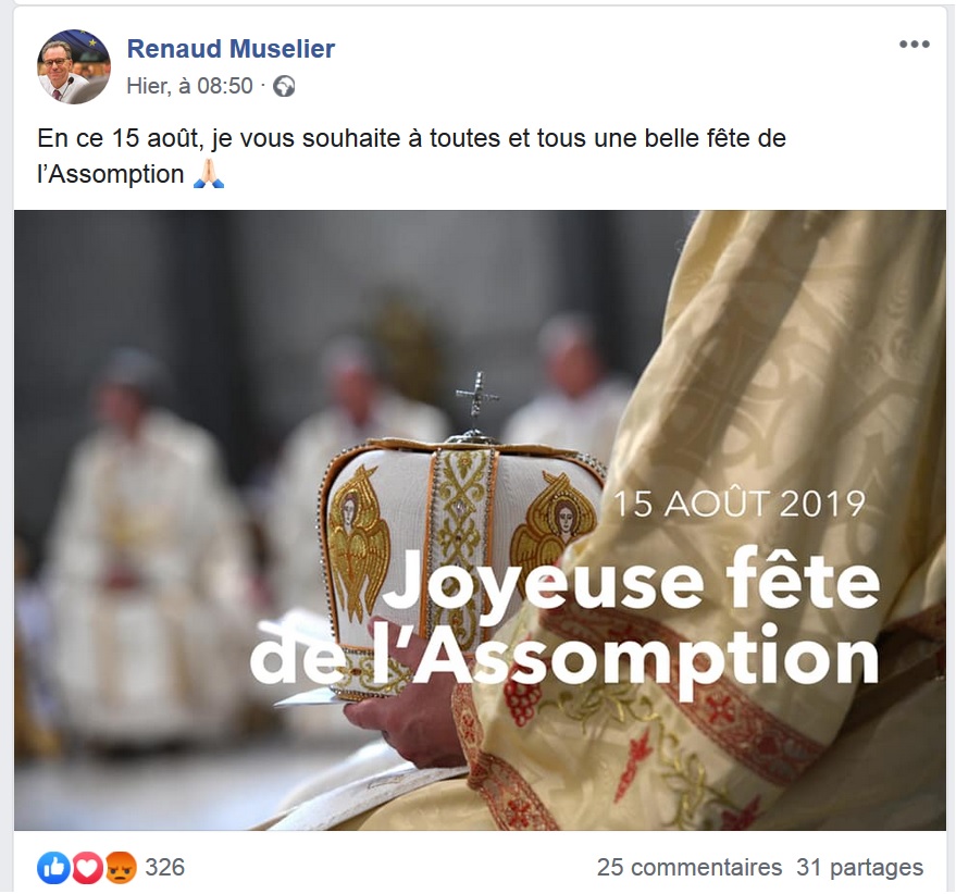 D’autant que si M. MUSELIER était chrétien, non seulement il ne confondrait pas ces deux fêtes, mais en plus, il ne douterait pas de la prééminence du christianisme, et donc n’aurait pas ce besoin de l’amener dans l’espace public.