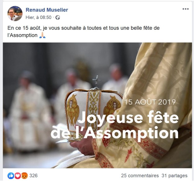 J’ai pu lire qu’il s’agissait là d’une atteinte à la laïcité. Non, ce n’est que l’expression personnelle d’un homme, qui ne se revendique pas ici président de la région PACA.