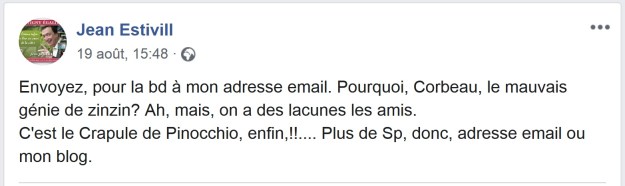 Comme à l’époque des messages diffusés par la France Libre sur la BBC, voici un message personnel : « Corbeau dit à Faux Cul : Vas voir chez les grecs, si j’y suis ! » je répète « Corbeau dit à Faux Cul : Vas voir chez les grecs, si j’y suis ! » et non, ce n’est pas du Verlaine …