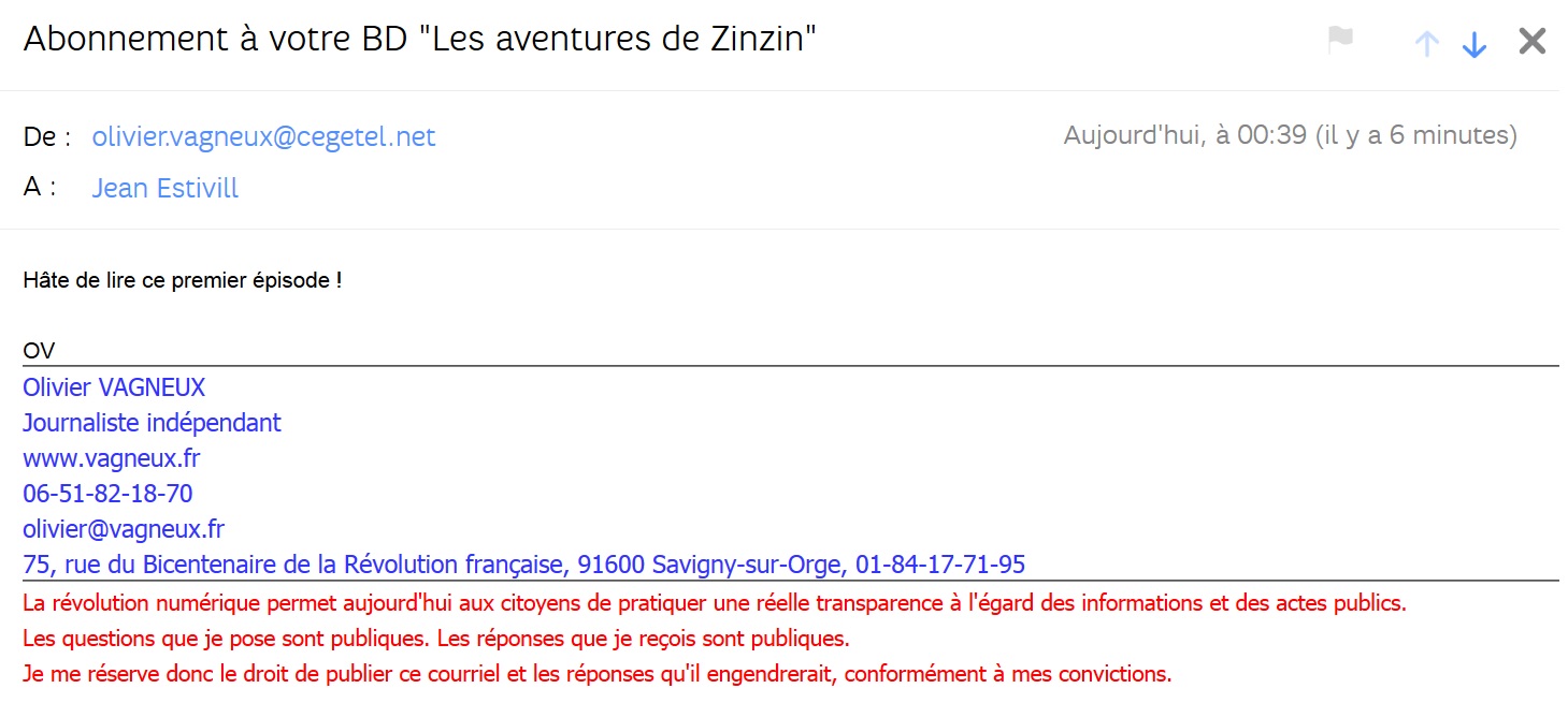 À l’origine, cela devait être aussi sur son blog, mais il a choisi de ne rien rendre encore public… Peut-être la peur de relayer des contenus possiblement injurieux ou diffamatoires ? Heureusement qu’il y avait la droite pour inventer la notion de diffamation privée !