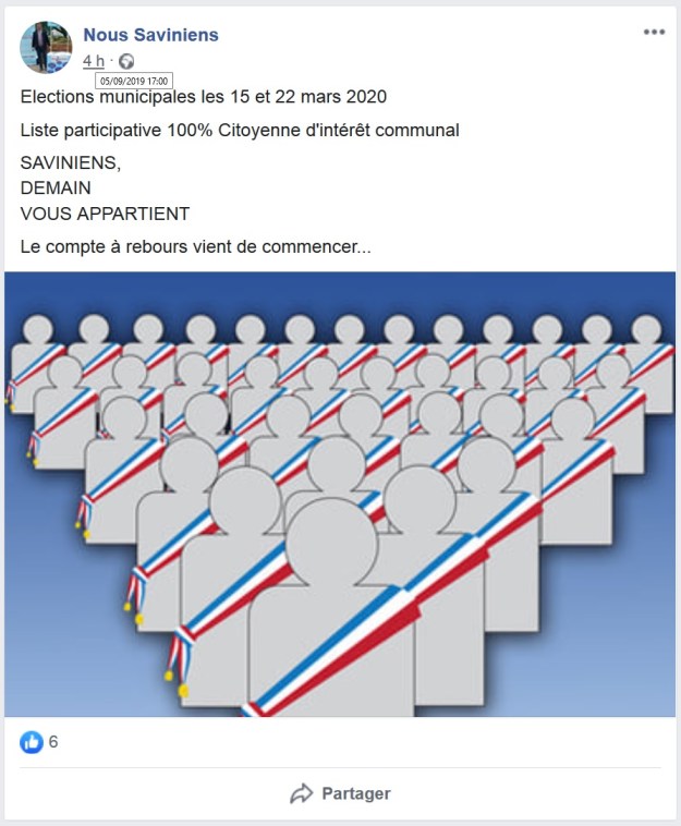 16 h 57 : Il annonce une liste citoyenne « Saviniens, demain vous appartient », et un collectif citoyen « Savigny, ville d’avenir ».
